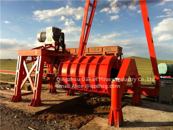 This machine uses the Roller to support the concrete pipe mould, and produce the roller force to concrete in the mould. When the roller rotate at a high speed, the concrete in the mould will spread in the inner wall of the pipe mould and form a cement pipe with the centrifugal force, and when the mould with the inner concrete pass on the roller, the concrete between the mould and the roller will be compacted solid to form a pipe.